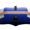 Надувная лодка СТЕЛС 295 изготовлена и ПВХ ткани плотностью 950 гр/м.кв., и представлена в современном дизайне и комбинированном сине/белом цвете.