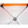 - При креплении укрытия на льду распределять растяжки симметрично по всему периметру, что поможет избежать перекоса и чрезмерной нагрузки на молнию входной двери